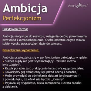 Najczęściej są to potrzeba kontroli, nadmierna odpowiedzialność, perfekcjonizm, życie w napięciu, nadwrażliwość na ocenę, lęk przed błędem i trudność w akceptacji własnych emocji. Same w sobie mogą wyglądać niewinnie, ale w neurotycznej konstrukcji psychicznej stają się źródłem cierpienia.